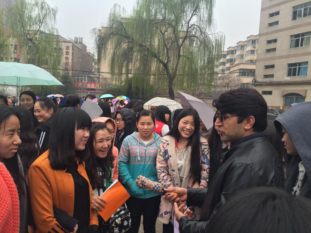 本网讯 2016年3月17日,由英语协会理工分会与外语系共同组织的本学期第一次英语角在英语角广场拉开帷幕,来自美国的Max、James、Alex、David 4名外籍教师与外语系李蓉、苏琴、张荣、李亚敏共同担任指导教师。本次活动以“Health”为主题,吸引了全院400多名同学参加。