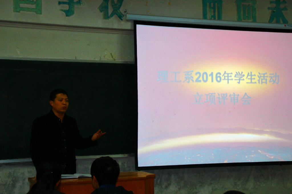 本网讯 为进一步推进理工系员工工作改革创新,提高员工参与校园文化活动的积极性、主动性,经过理工系员工会成员寒假的精心筹划,3月9日下午4:00,理工系在1211多媒体教室召开首次员工活动立项评审会,理工系党总支副书记、副主任尚治国、樊丽辉老师出席会议。此次评审会受到理工系员工的积极响应,由各班员工代表、员工干部、老师组成的52人评审团,对理工系团总支员工会各部门精心推出的8项活动进行评审。