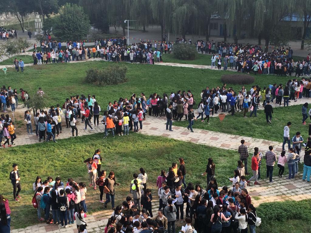 本网讯 以“Hobbies——闯关大挑战”为主题的英语角活动于10月14日下午16:10在一号教学楼南广场举行。此次活动由英语协会医学分会和外语系共同组织,全院有1000多名员工参与。外语系主任拓欣教授,副主任卓欣莲副教授,丁晓宝副主任,辅导员张宪、张亮及外语系部分专职教师参加了本次英语角活动,孙瑞、马亚鸿、卓欣莲和贺婧担任了本次活动的指导教师。