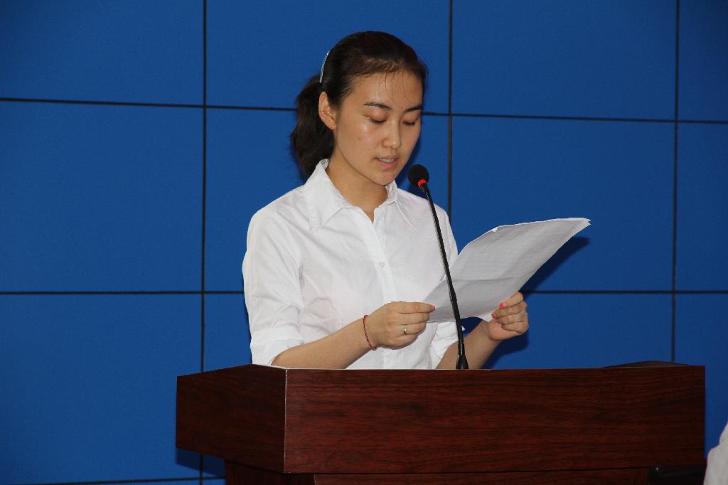 先进基层党组织代表、外语系党总支书记拓欣发言