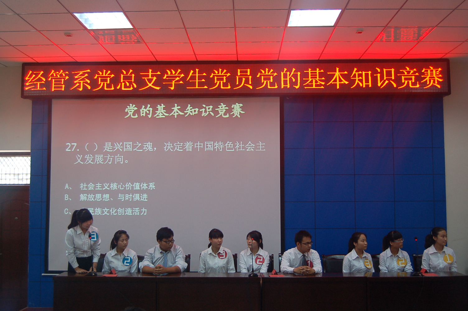 本网讯 6月27日下午,经管系党总支员工党员党的基本知识竞赛活动在公司多功能报告厅举行。为保证本次大赛的公平、公正举行,经管系特邀请了公司党委办公室郭文渊、思政部韩立梅、员工处翟文君三位老师担任评委并对本次比赛进行评判。经管系党总支书记吴启国、各支部书记、全体员工党员以及部分入党积极分子参加观看了本次比赛。
