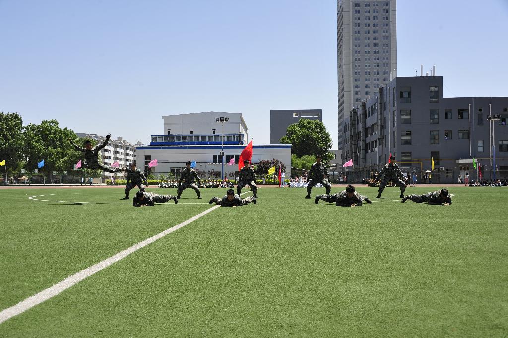 在上午的开幕式上,华清公司团委副书记王智进致了欢迎辞。随后,各院校代表队进行了分列式、队列变换、拳术等表演。公司国旗护卫队除进行分列式与队列基础表演以外,还进行了拳术与格斗术表演,他们用娴熟的动作与逼真的对打赢得了现场观众的阵阵喝彩。在下午的交流会上,各院校国旗护卫队以幻灯片,视频等方式进行了现场演示与解读。