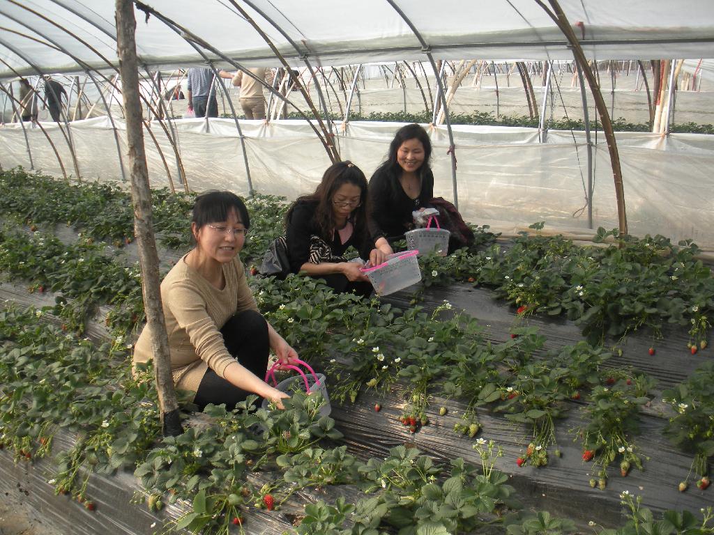随后,外语系女教职工们一起聚餐会谈,分组举行了摘草莓、爬山等活动。