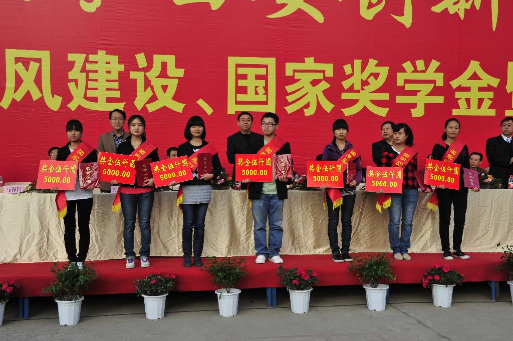 本网讯 为进一步加强学风建设,在全院范围内掀起学风建设新高潮,以良好的学风迎接合格评估,公司于10月24日下午在大操场举行了2011-2012学年度学风建设、国家奖学金暨评优表彰大会。公司领导,各系各部门负责人,全体辅导员和各系教研室主任、2011级和2012级全体同学以及2010级和2009级获奖员工共5000余人参加了会议。会议由经理助理、教务处处长马保国主持。