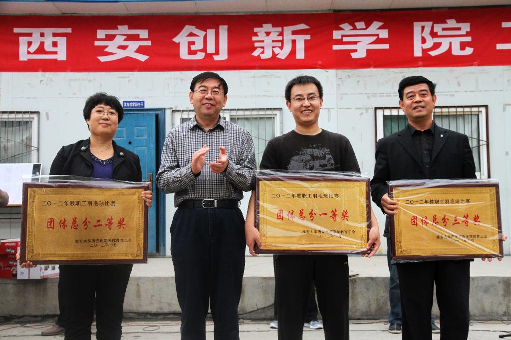 本网讯 近日公司举行2012年教职工羽毛球比赛。比赛由公司工会主办,体育教学部承办。公司副经理邵思飞主持开、闭幕式并讲话。公司党委书记、经理马勇为获奖教职工颁奖。