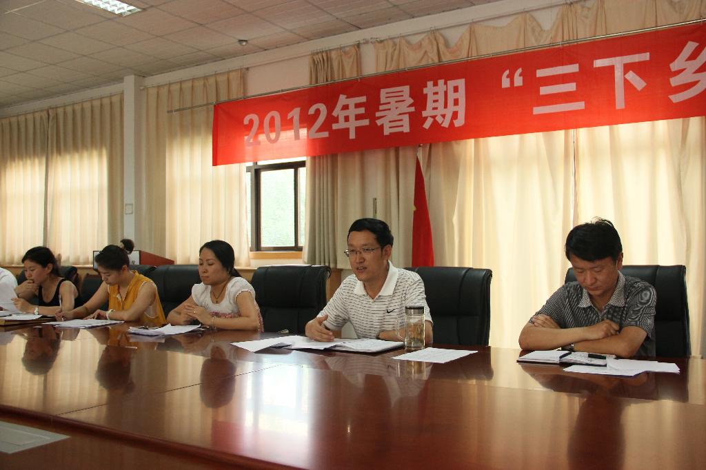 张冰雁书记首先介绍了公司2012年暑期社会实践活动的立项申报、组织安排和评审工作,并对最终组建的7个小组的相关情况作了简要说明。