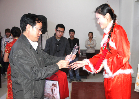 员工处处长陈瑶为获得二等奖的同学颁奖