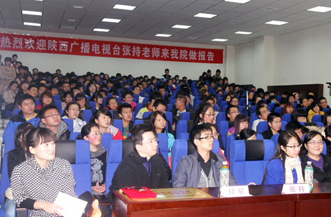 本网讯 11月8日晚7时,由西安市人才服务中心、FM101.1《张持有道》栏目、西安毕业生就业市场主办,韦德体育人才招聘处承办的陕西省首档广播职场就业节目《张持有道》高校巡回演讲会暨公司2009级老员工职业生涯规划讲座在公司学术报告厅隆重举行。张持老师携4位资深企业人力资源主管组成的团队走进校园,为公司同学作了一场题为《找份工作去恋爱》的精彩讲座。公司2008级、2009级辅导员,就业联络员,人才招聘处全体人员及240余名同学参加了此次活动,腾讯微博对活动进行了现场微博直播。