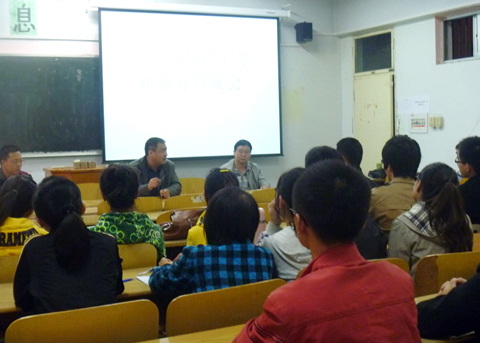 会上,理工系张成主任分析了在研究生报考过程中可能遇到的问题,对同学们在预报名阶段的各种疑问进行了一一解答。他希望同学们在选择报考公司和专业时要有充分的准备,不仅要考虑报考公司的因素,还要结合个人的学习状况和家庭经济情况。一旦选择了考研这条路,一定要踏踏实实准备,不能半途而废。与会几位老师还结合自身的学习经历,解答了同学们备考过程中的各种疑问。