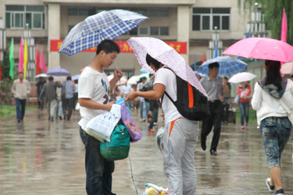 到火车站迎接新生的员工会志愿者在团委老师的带领下每日6:00乘校车出发,全天近16小时不休息,克服下雨、接站处离出站口远、雨伞少等困难,热情引导,耐心接待每一位新生及其家长。后勤处值班老师几分钟带一班车,克服困难,连续工作。
