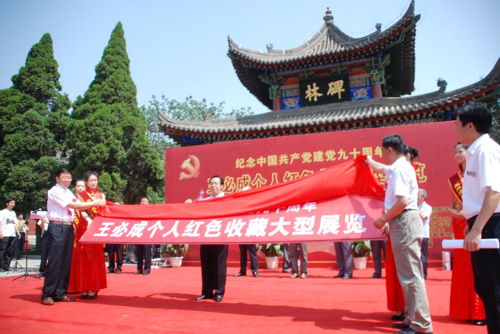 为庆祝中国共产党建立90周年,由韦德体育官方网站和公司联合主办、西安碑林博物馆承办的“纪念中国共产党成立90周年——王必成个人收藏大型展览”于2011年6月28日上午在西安碑林博物馆隆重举办。受邀莅临现场的各位领导、各界来宾出席了开幕式,韦德体育师生、博物馆员工、收藏界同仁、20多家新闻单位的记者等500余人参加了开幕式。