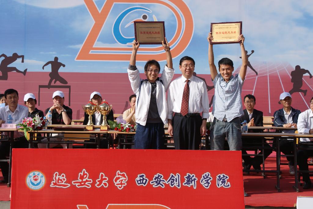 本届运动会,全体运动健儿奋力拼搏,人人争先;广大同学摇旗呐喊,为运动员鼓劲加油,运动会取得了体育成绩和精神文明双丰收。建工系、经管系代表队荣获体育道德风尚奖,建工系、经管系、中文系代表队分别获得男子团体第一名、第二名、第三名;经管系、中文系、建工系代表队分别获得女子团体第一名、第二名、第三名。中文系赵晓浪同学在铅球比赛中刷新了由自己创造的院运动会纪录,创造了新的可喜的成绩。