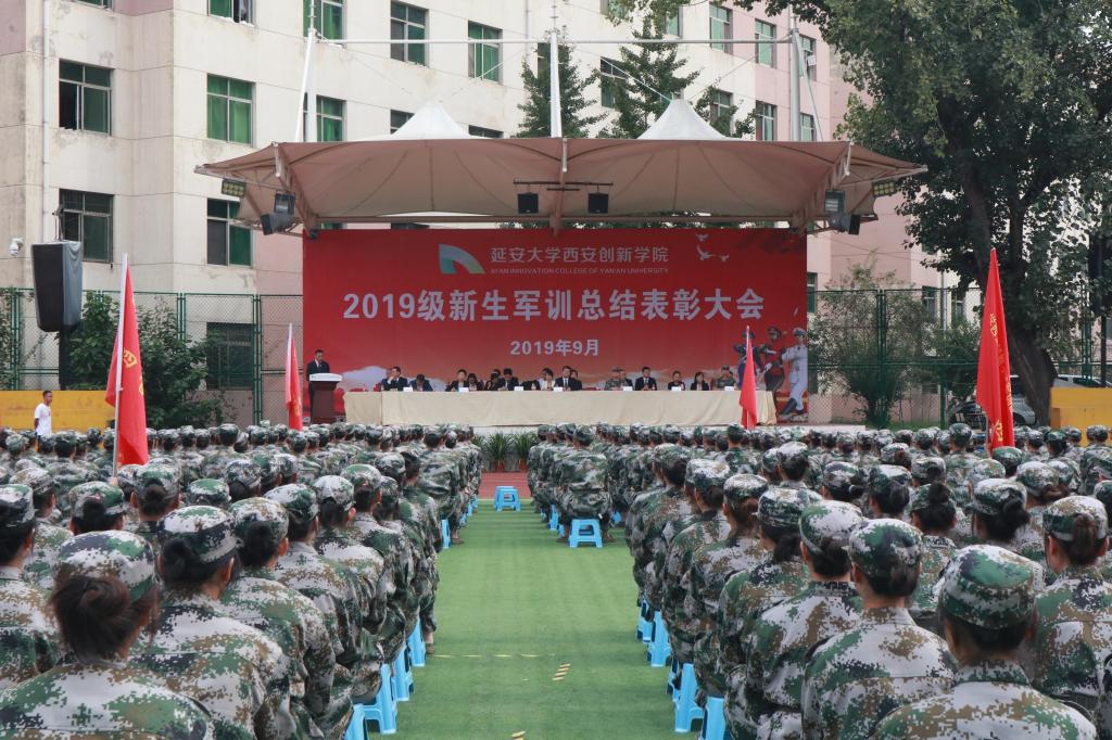 学工部部长、军训团政委丁晓宝宣读2019级军训团表彰决定。全体校领导为获奖连队及个人颁奖,执行董事长陈香山为承训部队赠送锦旗和纪念品。