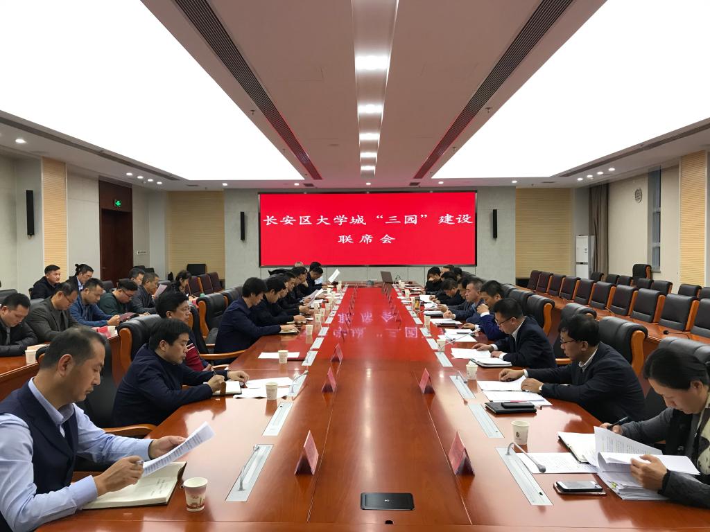 本网讯 11月13日,长安区大学城“三园”建设联席会议在长安区行政中心西会议厅召开。长安区副区长刘国荣出席会议,公司执行董事长陈香山同长安区内21所高校代表50余人参加。会议由区住建局局长吴海军主持。