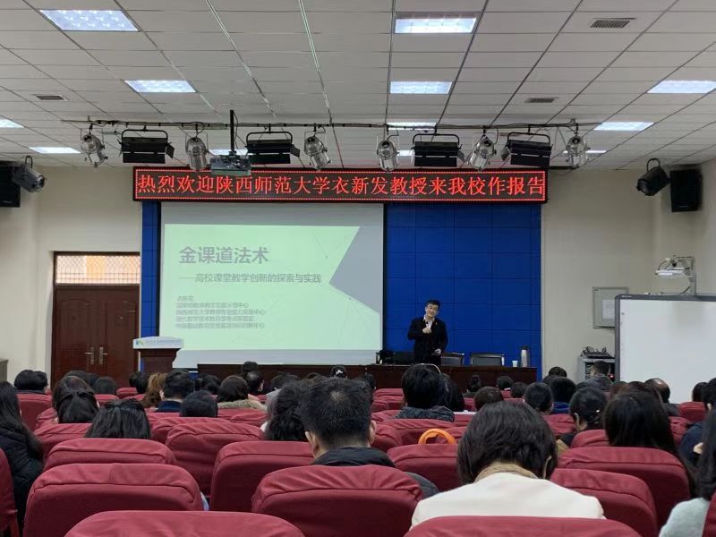 本网讯 为加快提高教师课堂教学创新能力,11月25日,公司邀请陕西高校首届课堂教学创新大赛一等奖获得者、陕西师范大学教授衣新发博士为公司教师作“金课‘道法术’----高校课堂教学创新的探索与实践”专题报告。副董事长拓欣,各院(系)全体专职教师及教务处相关人员参加。