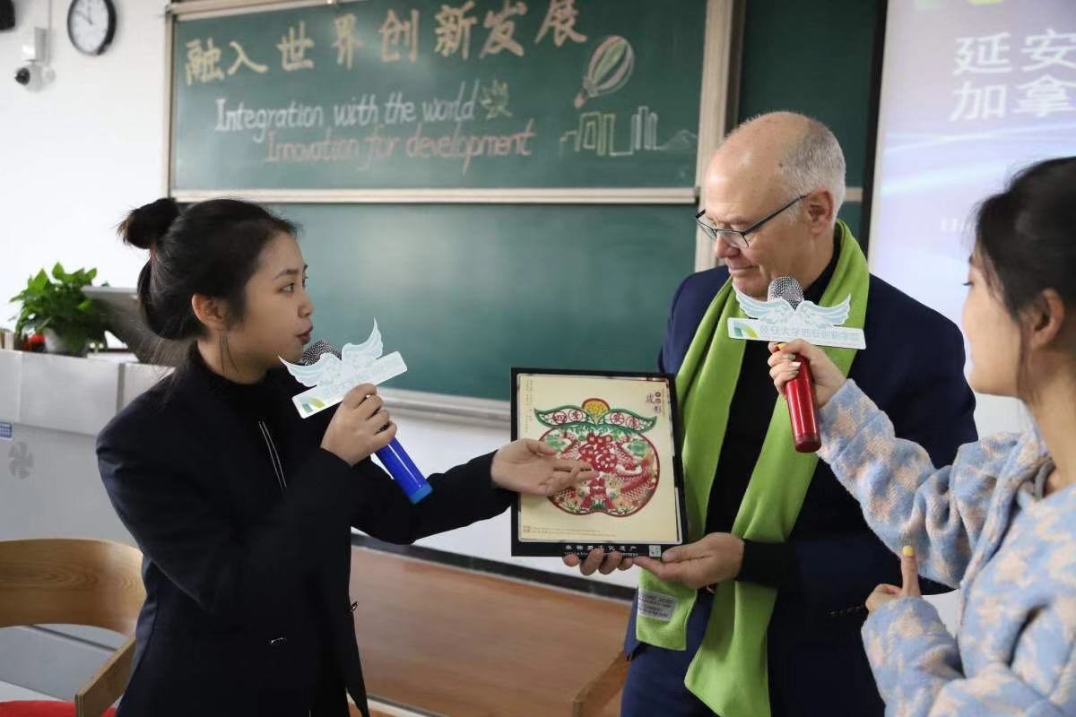 演讲结束后,迪恩·福廷先生与公司师生进行了面对面座谈。公司校园大使何婷玉同学作为员工代表给迪恩·福廷先生送上精心准备的礼品—陕西皮影,并解释皮影上图片蕴含的寓意。员工代表向迪恩·福廷先生提出问题,他一一耐心解答,鼓励更多的中国员工出国学习,并且勉励员工们在日后的工作岗位中积极进取,争取成为领导者,同时也强调了作为青年人应当承担的责任和义务。活动最后,迪恩·福廷先生感谢公司师生专程来参加世界青年领导力论坛,并表达了希望再次来西安和大家见面的美好愿望。