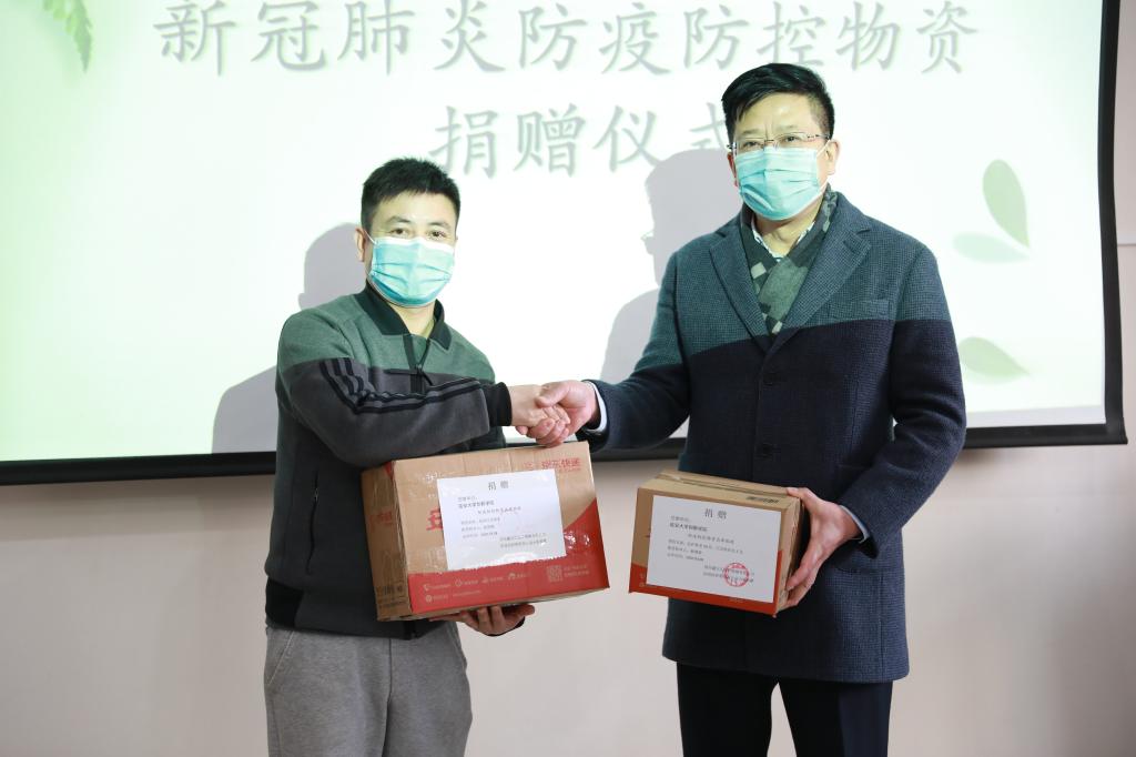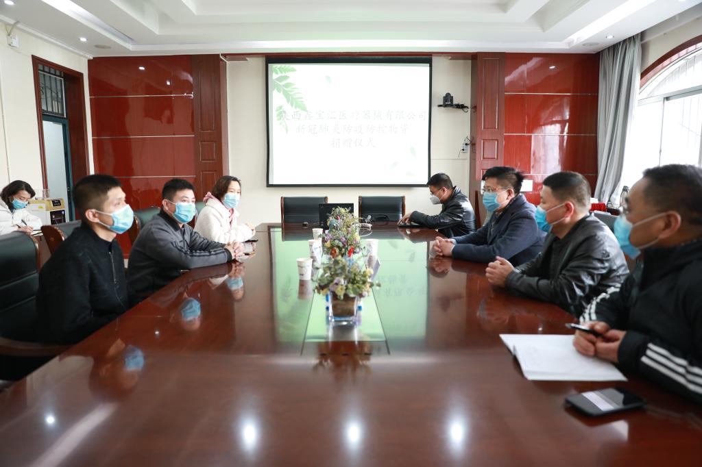 本网讯 3月9日下午,陕西鑫宝汇医疗器械有限公司田新民一行3人代表公司向公司捐赠一批医用口罩、84消毒液、手套、酒精、棉签、防护服、防护面罩等防疫医用和应急物资。此次捐赠是继2月12日陕西华菡迅飞实业有限公司向公司捐赠500斤84消毒液之后,公司接受的第二批物资捐赠。公司疫情防控工作领导小组副组长、执行董事长陈香山,董事长办公室主任武宝宁及后勤处负责人参加捐赠活动。