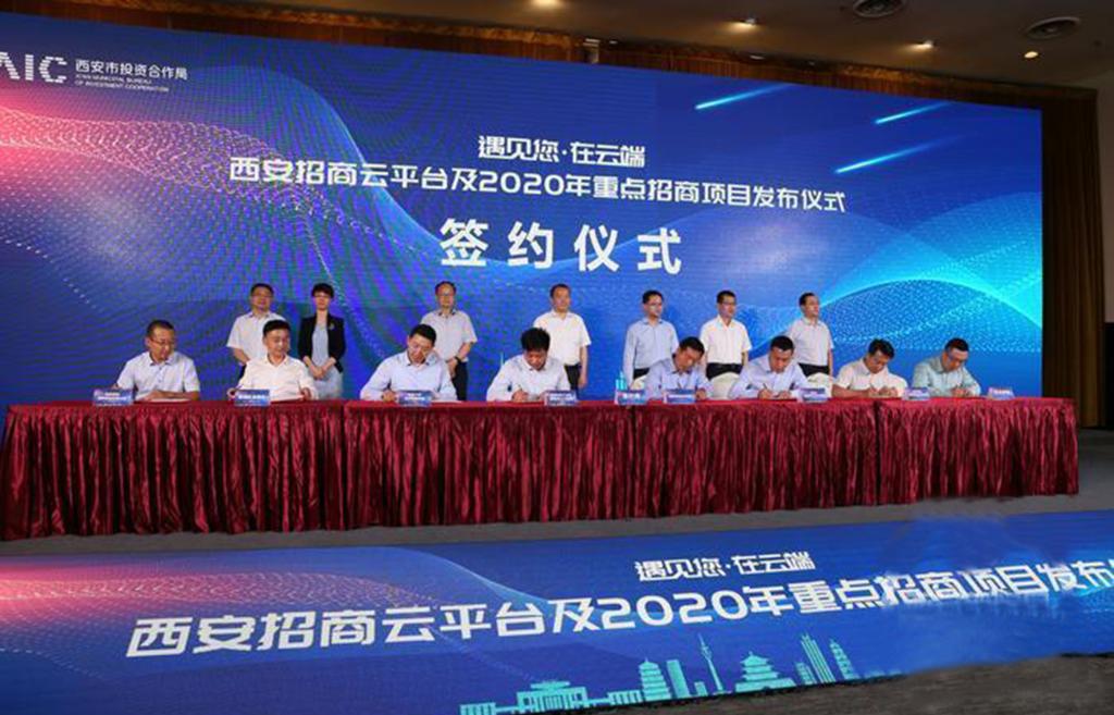 本网讯 5月21日下午,西安市招商云平台及2020年重点招商项目发布仪式在曲江宾馆举行。公司董事长王喜荣应邀出席,临潼校区项目办相关人员参加。