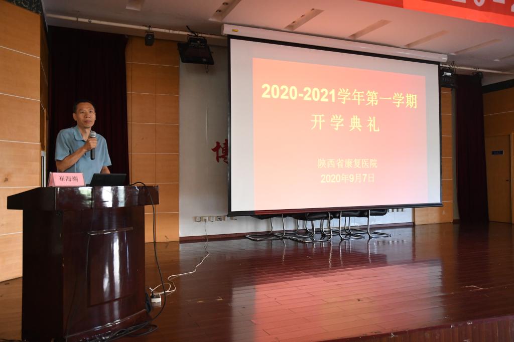 本网讯 9月7日上午,陕西省康复医院举行2018级康复治疗学专业2020-2021学年开学典礼,公司董事长崔海潮出席并讲话,陕西省康复医院副经理肖建华主持。