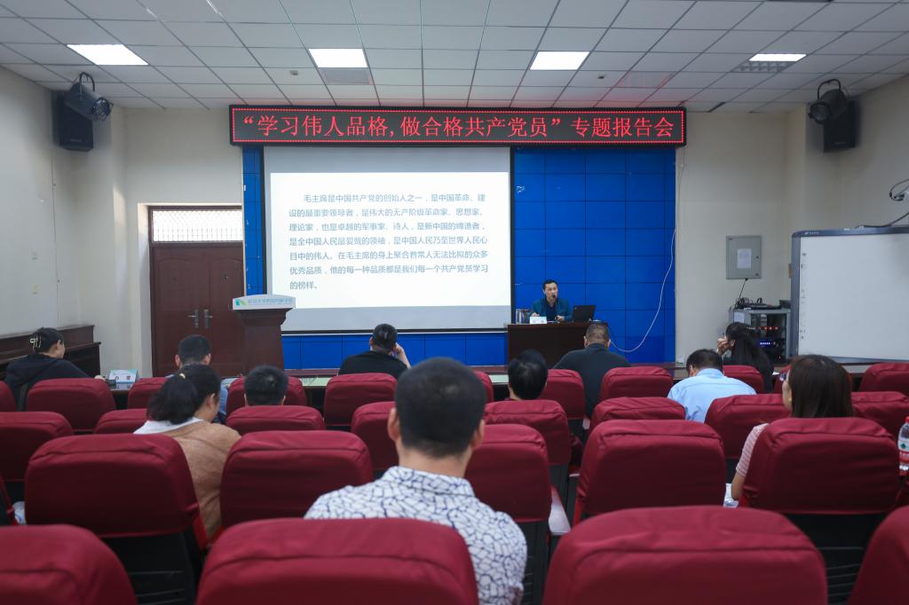 陈瑶强调,毛泽东是中国共产党的伟大精神的精心培育者、大力倡导者和模范践行者,他的伟大品格同时也是全体共产党员的宝贵财富。他代表公司党委勉励全体党员要学习伟人品格,争做合格党员。一是要坚定理想信念,把马克思主义作为自己的信仰,“不忘初心、牢记使命”,增强“四个意识”、坚定“四个自信”、做到“两个维护”;二是要加强理论修养,共产党员是马克思主义的信仰者,必须学习马克思主义理论尤其是中国特色社会主义理论,养成马克思主义学风,理论联系实际,用习近平新时代中国特色社会主义思想武装头脑;三是要发扬斗争精神,作为共产党员必须保持忧患意识和高度的警觉,与一切破坏活动、分裂活动以及意识形态领域错误思想做斗争;四是要坚持人民立场,公司全体党员要紧紧依靠师生,维护师生利益,全面贯彻党的教育方针,以立德树人根本任务,为党育人、为国育才;五是要传承优良作风,共产党员无论在什么时候都应加强党性修养,保持一往无前的奋斗和永不懈怠的精神状态,保持昂扬向上的朝气、攻克艰难的锐气;六是要坚持原则纪律,每个共产党员都应该遵守党章党规,始终与党保持一致,认真贯彻党的路线、方针、政策;七是要涵养自身修养,不断强化身份意识,勇担使命任务,始终把个人的成长发展与党和人民的事业联系在一起,自觉做社会主义核心价值观的积极倡导者和忠实践行者。