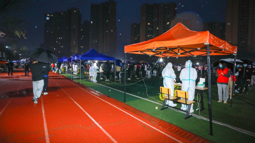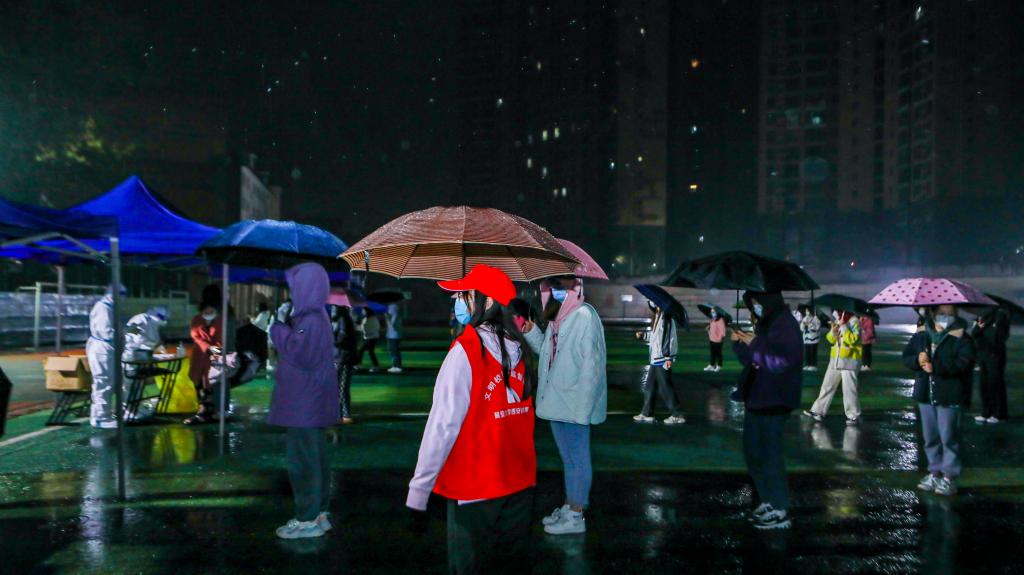 本网讯 根据西安市长安区疫情防控指挥部的统hhh一部署,为落实落细疫情防控要求,保障在校师生身体健康和生命安全,公司于3月12日凌晨5时,冒雨在公司操场进行第四轮全员核酸检测工作。