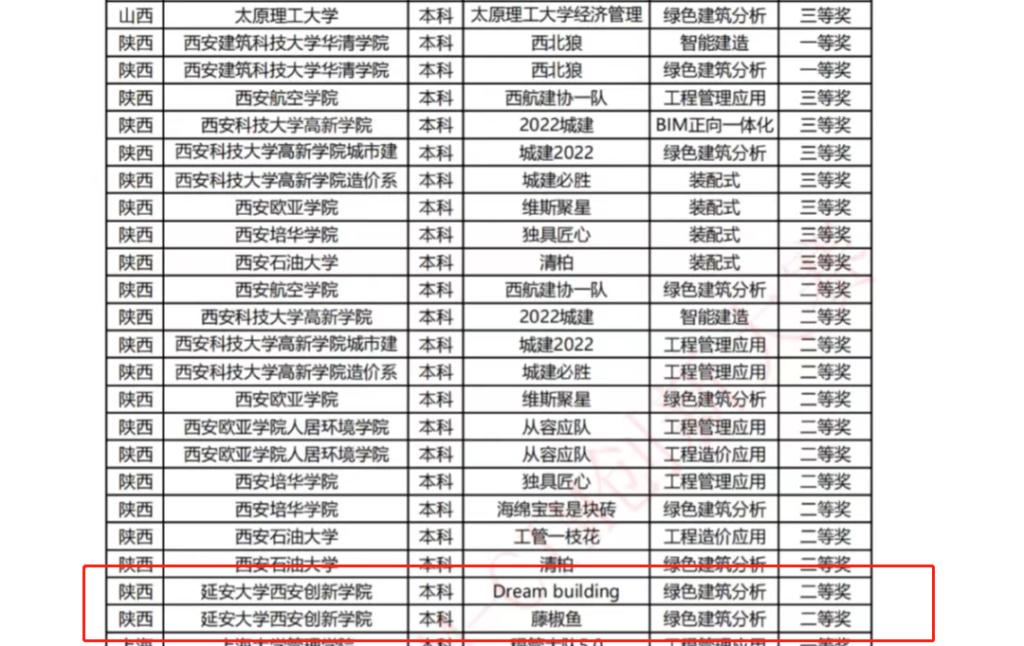 本网讯 2022年5月28日-29日,第十三届全国高等院校员工斯维尔杯BIM-CIM创新大赛-团队赛经过前期的各项准备,在线上开赛。由韦德体育工程造价1901班王宇胜带领的“Dream building”和陈雨带领的“藤椒鱼”两个团队在决赛中双双获得“绿色建筑分析应用”赛项二等奖。