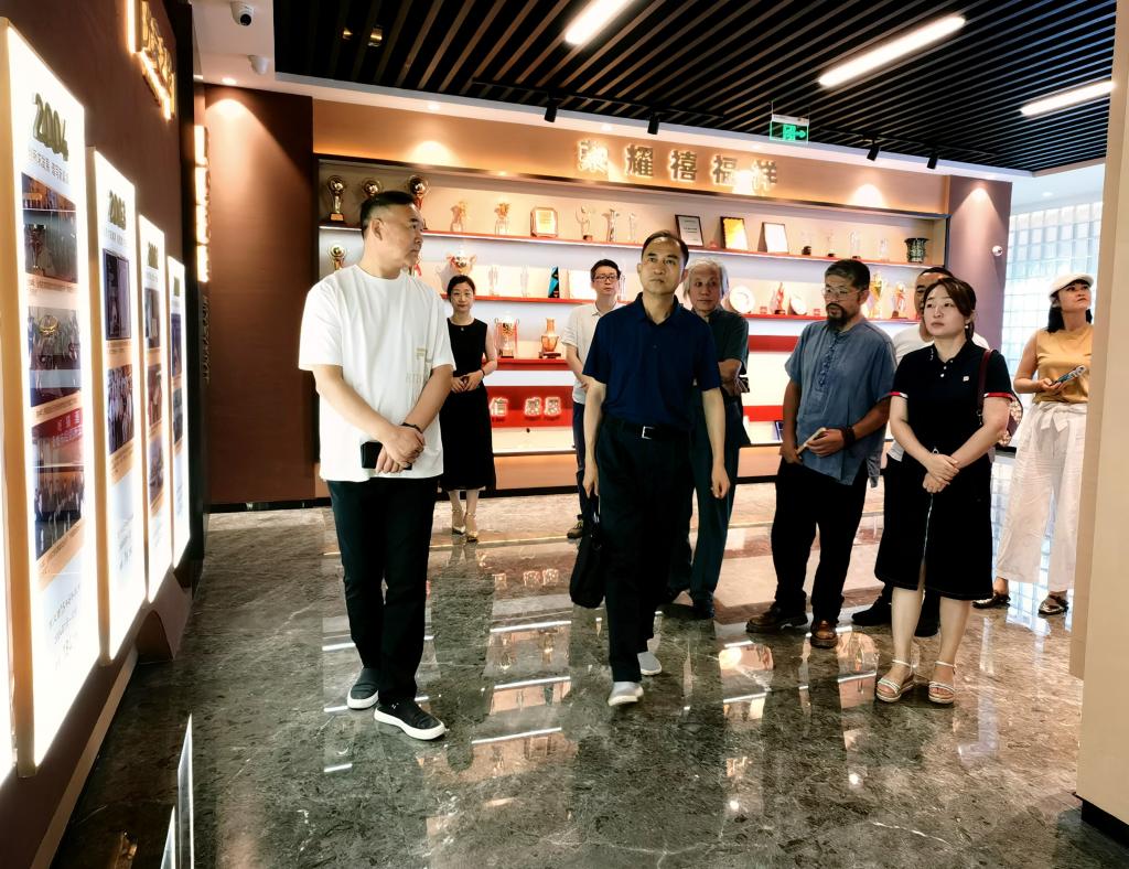 本网讯 2022年7月3日下午,公司执行董事长贺俊波应邀参观禧福祥美术馆。同行应邀人员有省政协文史专业委员会副主任陈俊哲、西部美术馆馆长王卫民、羊文化博物馆馆长张向阳,公司艺术与传媒公司名誉经理王家民、经理张恒等人。