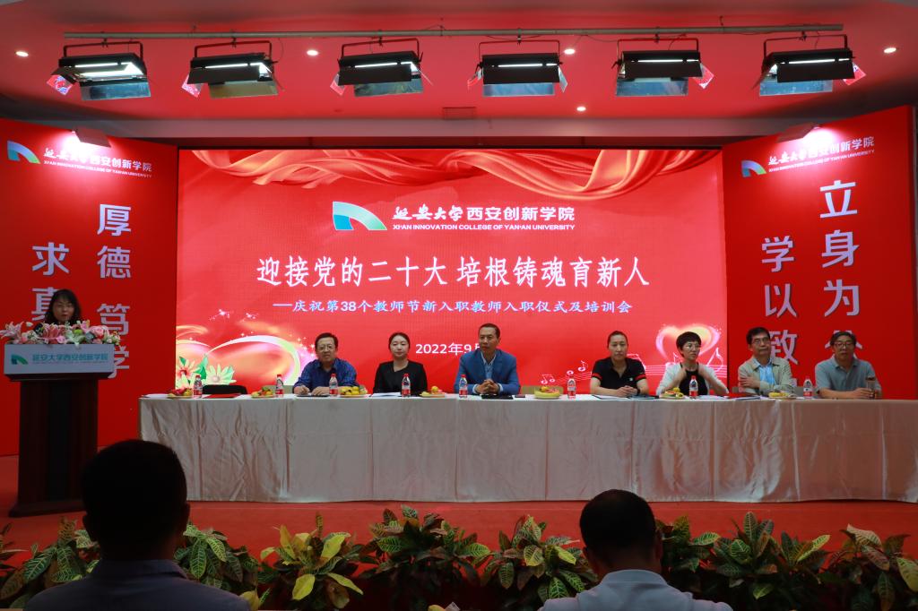 本网讯 在第38个教师节来临之际,为进一步提高2022年新入职教师的职业荣誉感和岗位胜任度,促进新入职教师尽快融入公司、融入角色、融入岗位,9月8日下午,公司在老员工活动中心召开主题为“迎接党的二十大、培根铸魂育新人”的庆祝第38个教师节新入职教师入职仪式及培训会,公司董事长崔海潮、执行董事长贺俊波出席会议并讲话。副董事长拓欣、党委副书记白雪、教务处处长刘劲飞、人事处处长魏建丽以及2022年全体新入职教师参会,会议由人事处处长魏建丽主持。