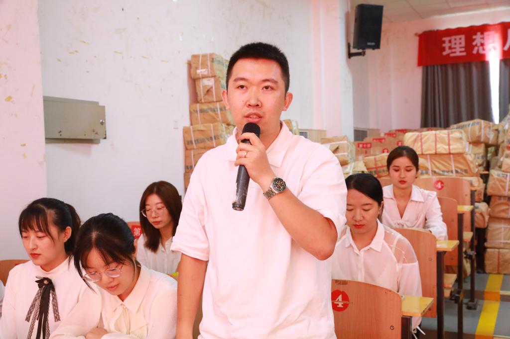崔海潮作总结讲话并作了新入职教师首场培训。他从参会的深切感受、对教师职业生涯的看法和对教师履职应具备的“爱、精、勤”核心品质方面进行了解读和强调。