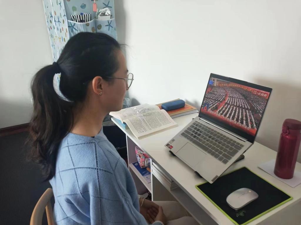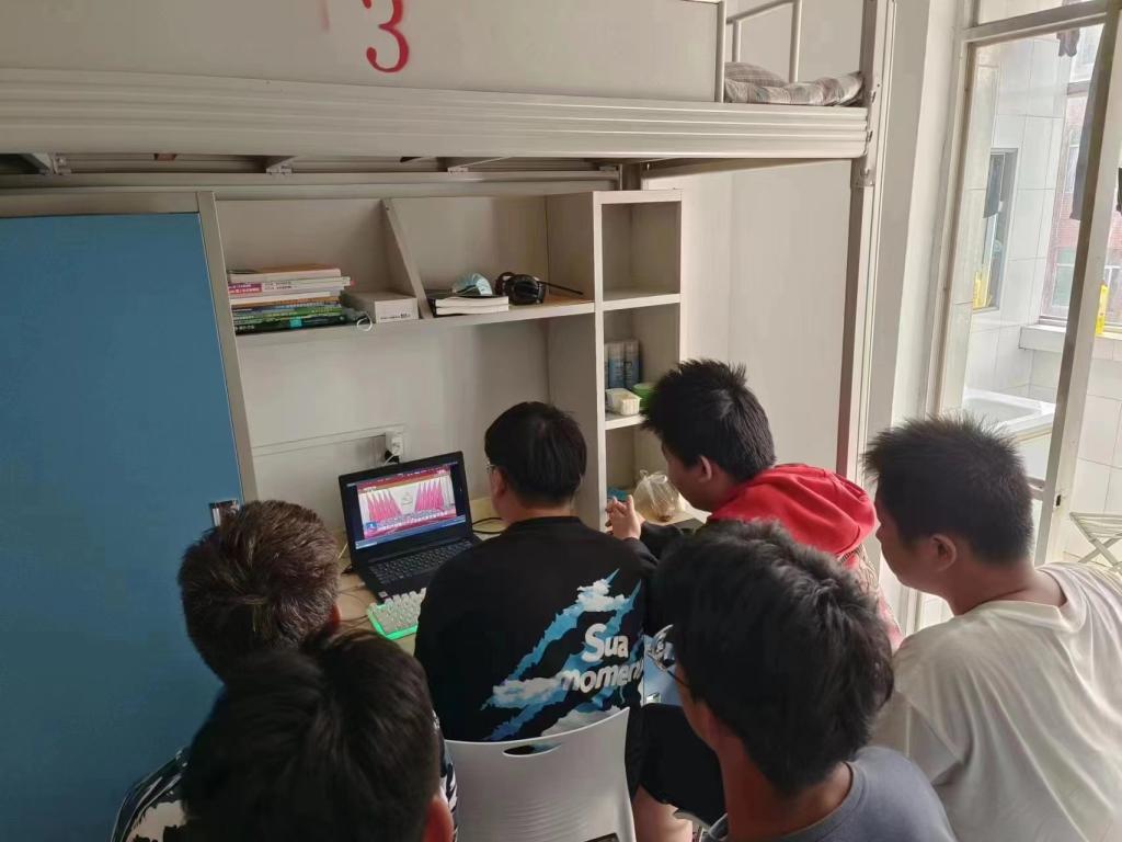 员工在宿舍观看党的二十大开幕会