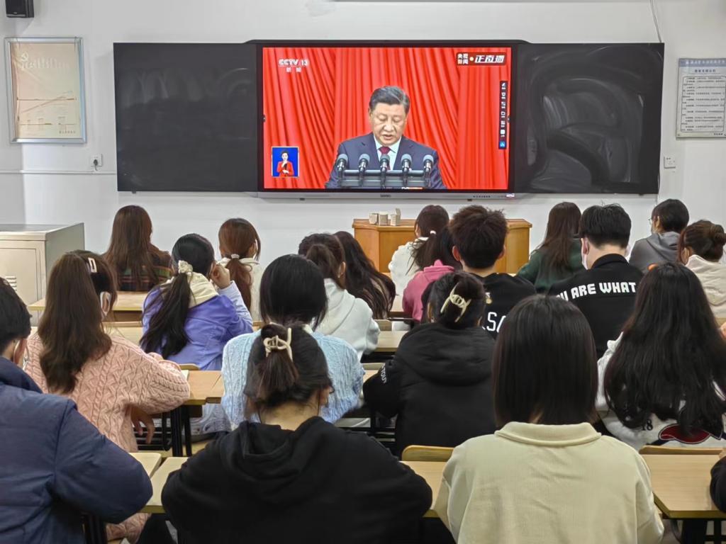 国际公司师生观看党的二十大开幕会