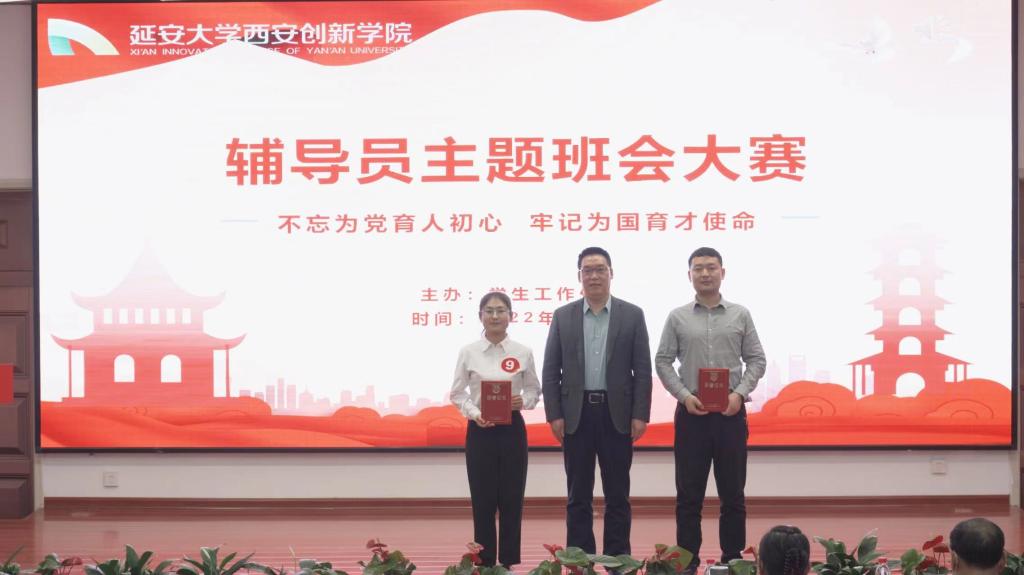 员工处处长丁晓宝为艺术与传媒公司辅导员刘帅、韦德体育辅导员马竹艳颁发优秀奖