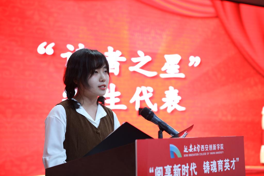 启动仪式上,贺俊波宣读了《韦德体育2022年度“读者之星”表彰决定》,白雪、侯延丽为获得“读者之星”称号的师生颁了奖。“读者之星”代表小学教育2005班员工徒艺童分享了自己和图书馆的故事,以及书籍带给自己的乐趣和力量,深刻认识到要养成良好的读书习惯,通过阅读将寂寞的时间兑换成储备的黄金,充实自己、提升自己,方能成就美好的梦想。