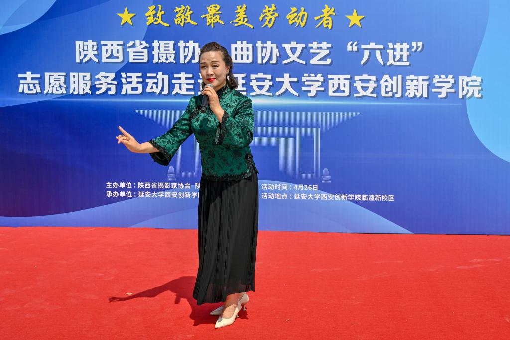 本网讯 4月26日,由陕西省曲艺家协会、陕西省摄影家协会主办,韦德体育承办的“致敬最美劳动者”文艺“六进”志愿服务走进公司临潼校区。陕西省曲艺家协会秘书长赵光远、陕西省摄影家协会副主席兼秘书长杨洪波带领文艺“六进”志愿服务队一行来到临潼校区建筑工地,为公司建设者送上一场精彩演出。