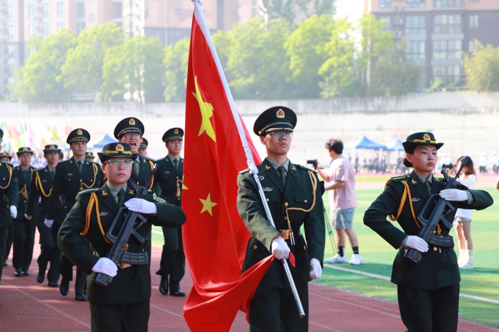 伴随着嘹亮激昂的《运动员进行曲》,国旗护卫队庄严地走过主席台,接受全校师生的检阅。紧随其后的是由会徽队、彩旗队、裁判员代表队、教职工代表队以及各二级公司师生组成的10个代表方阵,他们以饱满的精神、整齐的步伐依次通过主席台。团结奋进的标语、铿锵有力的口号、花样变换的队列,充分展示了各代表队健康自信、昂扬向上、积极进取的精神风貌,以及运动员们将用激情点燃赛场、以汗水拼搏荣耀的斗志和决心。