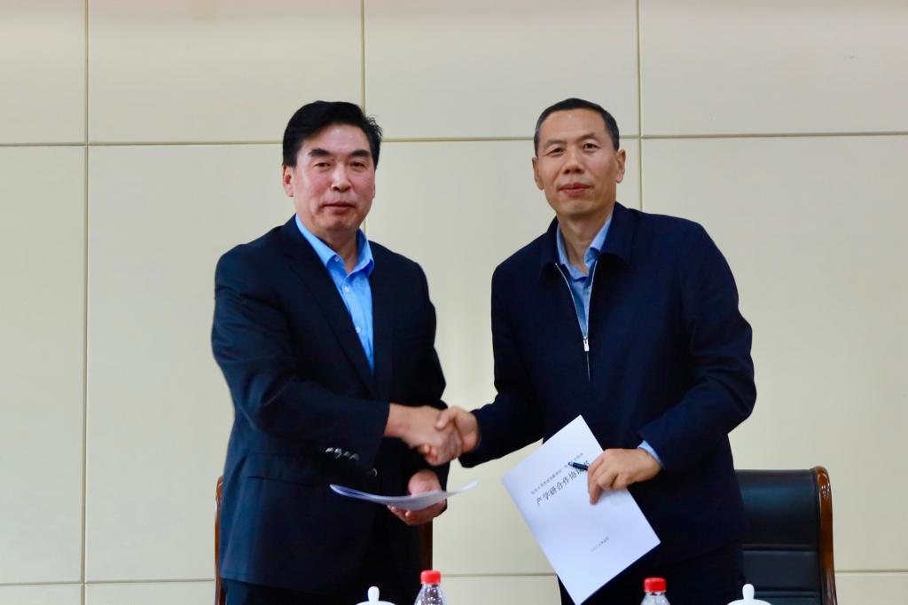 崔海潮与王建共同签订产学研合作协议