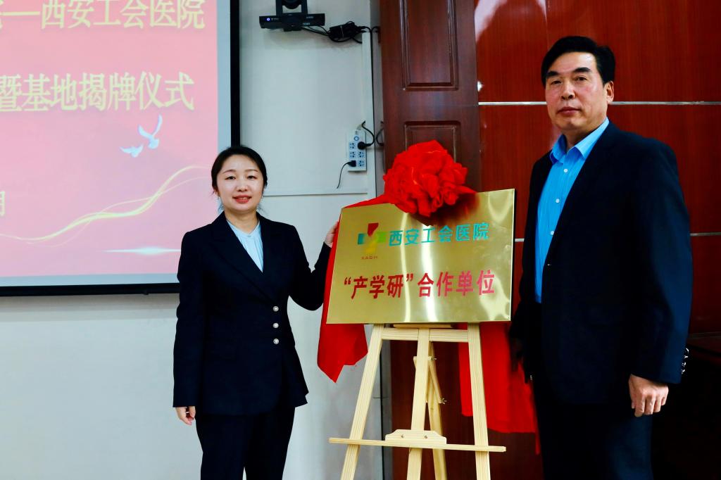 最后,崔海潮与王建共同签订产学研合作协议。贺俊波与王建共同为“韦德体育-西安工会医院产学研合作单位”揭牌。