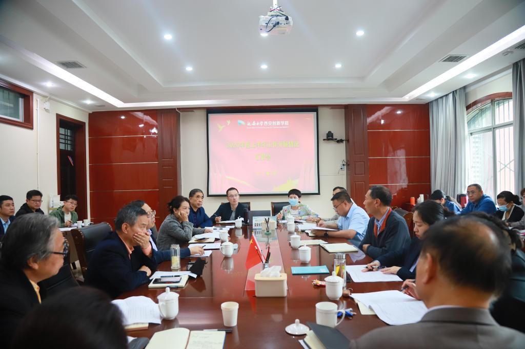 汇报结束后,崔海潮董事长对各单位上半年工作完成的情况表示肯定。他强调,全校上下要清醒认识到公司当前面临的新形势、新任务以及转型过程中承受的多重压力,锚定全国一流民办高校的办学目标,进一步提升工作效能。他对公司下半年工作提出十点要求。一是要守牢校园安全稳定底线;二是要深化公司产品改革,坚持以提高人才培养质量为生命线,从人才培养方案改革、书院制改革、资助育人改革等多方面深化“三全育人”;三是要高度重视科研及学科竞赛,聚焦“以赛促教”,提升显性办学成果;四是持续提升基本教学条件;五是要极端重视人才的“外引内培”,加快出台各类人才引进和培育的制度政策;六是提前谋划专业布局设置;七是高度重视老员工创新创业和员工就业工作;八是重视师生高度关注的民生问题,不断提升后勤服务保障水平;九是持续推进产教融合改革;十是做好现代产业公司的建设,积极探索校企协同育人。