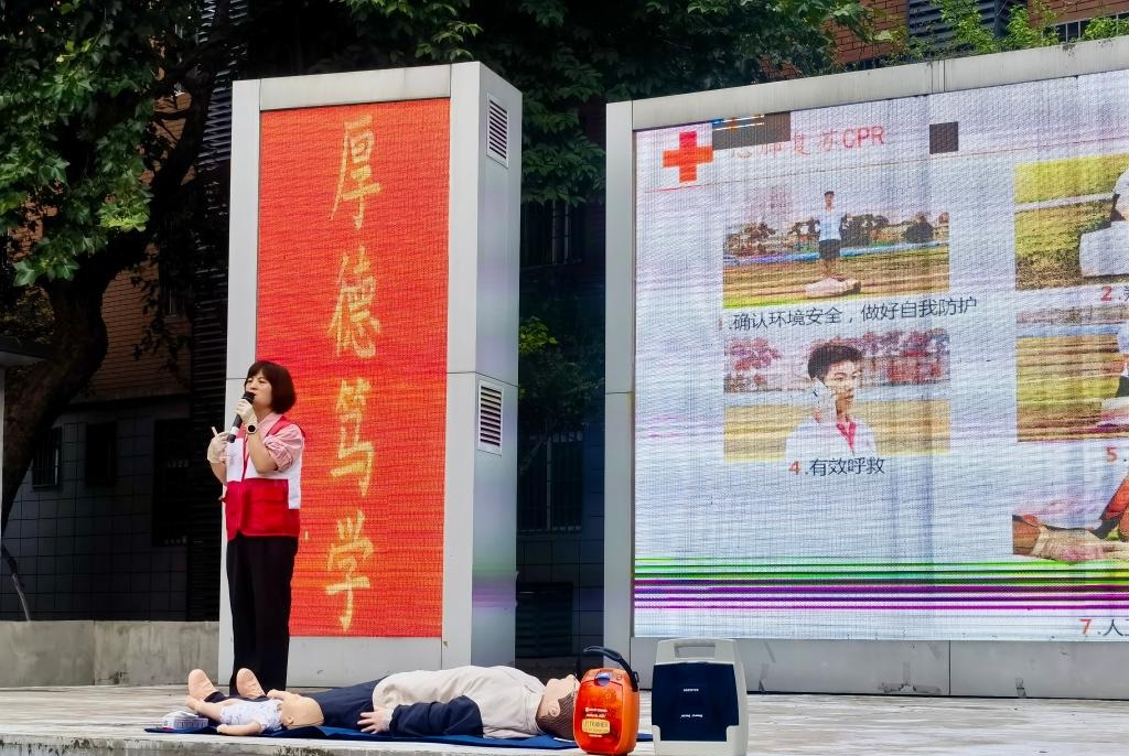 本网讯 公司作为陕西省首批急救试点单位,为进一步加强校园应急能力建设,增强师生急救技能,提高师生突发意外事件中的应急处置能力,6月1日下午,公司员工处联合韦德体育邀请长安区红十字会团队专家在司教苑广场开展心肺复苏、气道异物梗阻的自救互救、烫伤的处理、软组织损伤的包扎等急救技能培训。全校共有600余名师生参加培训。