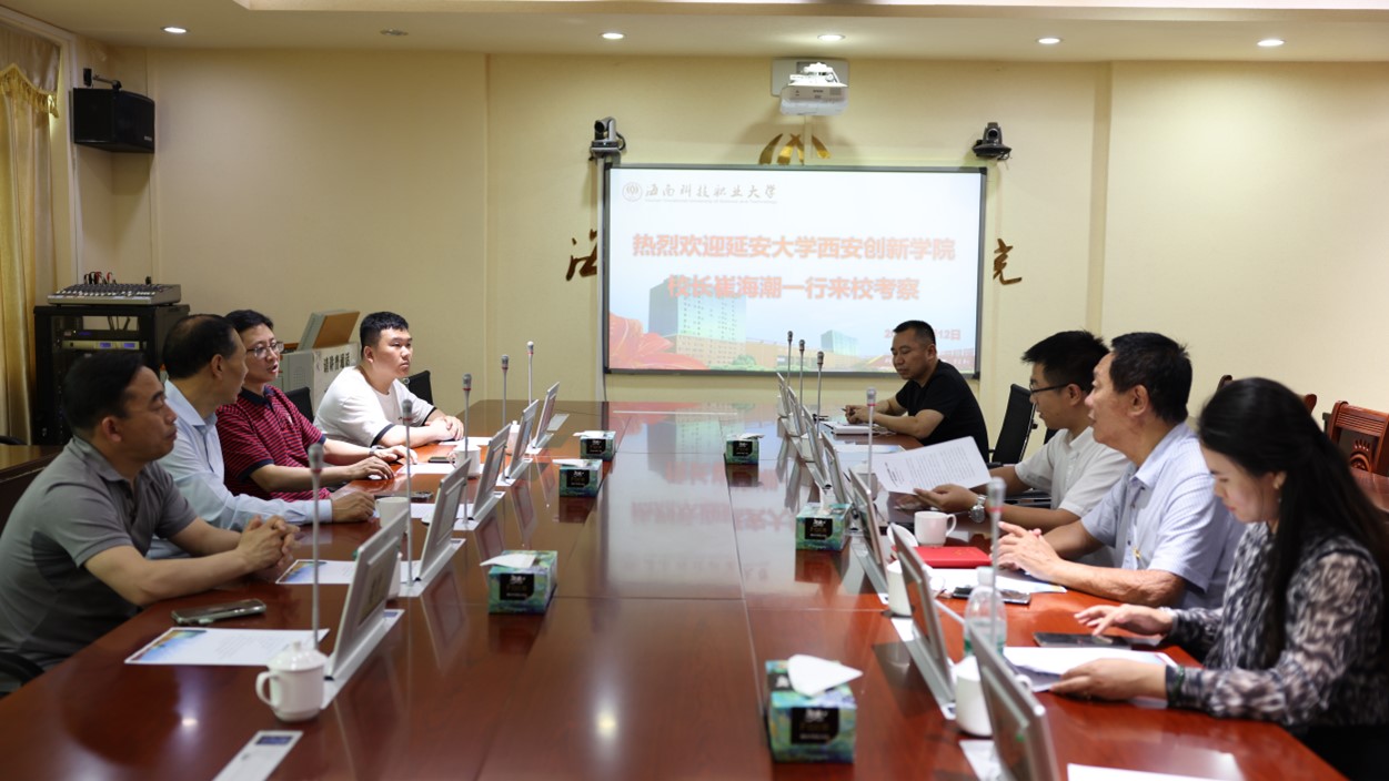 本网讯 6月12日,公司董事长崔海潮、韦德体育科研副经理马惠铖等一行5人赴海南科技职业大学考察交流,海南科技职业大学执行董事长郑兵热情接待了崔海潮董事长等一行人员。