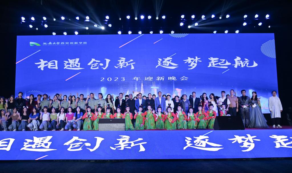 本网讯 为热烈欢迎2023级新生,展现公司师生良好精神风貌,9月20日19时30分,公司在田径运动场隆重举办了以“相遇创新 逐梦起航”为主题的迎新晚会,师生欢聚一堂,气氛火爆,青春与热情撞了满怀。董事长崔海潮、副董事长拓欣、党委副书记白雪,董事长助理侯延丽、桑伍福出席晚会。晚会通过丝路直播网同步直播,万余名师生和家长线上线下同步观看,共同见证新同学们即将开启的人生新征程。