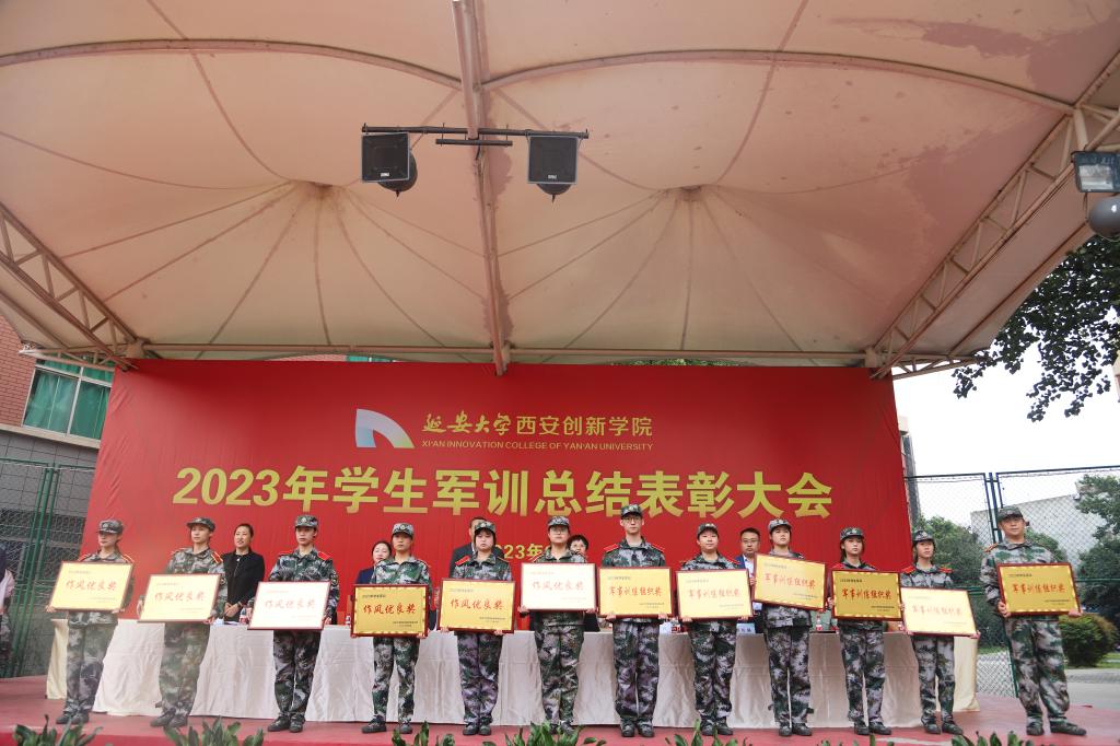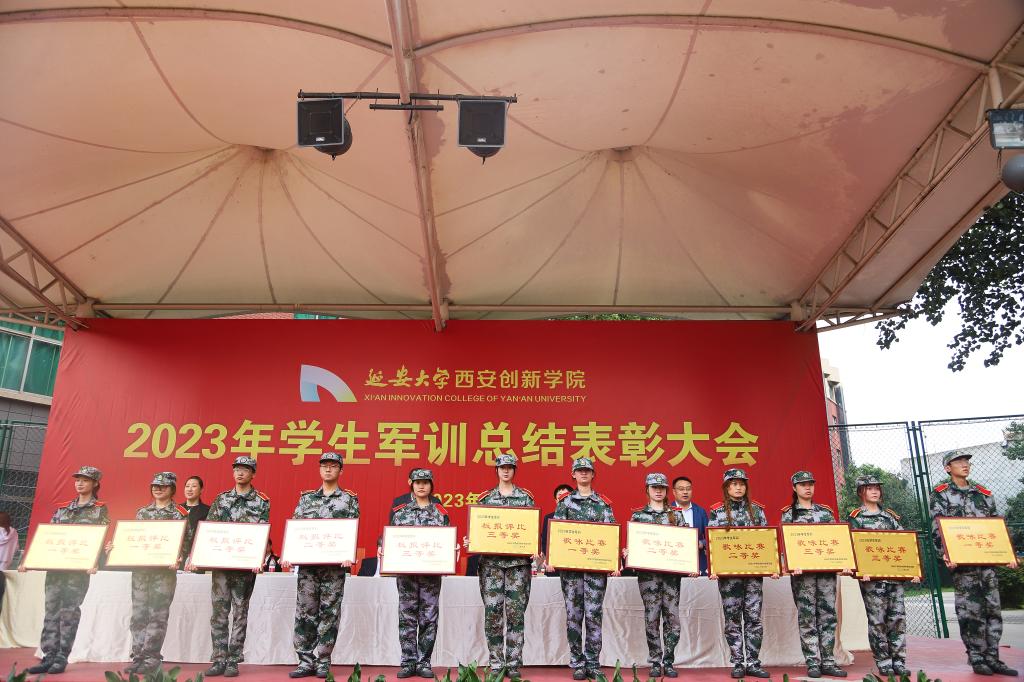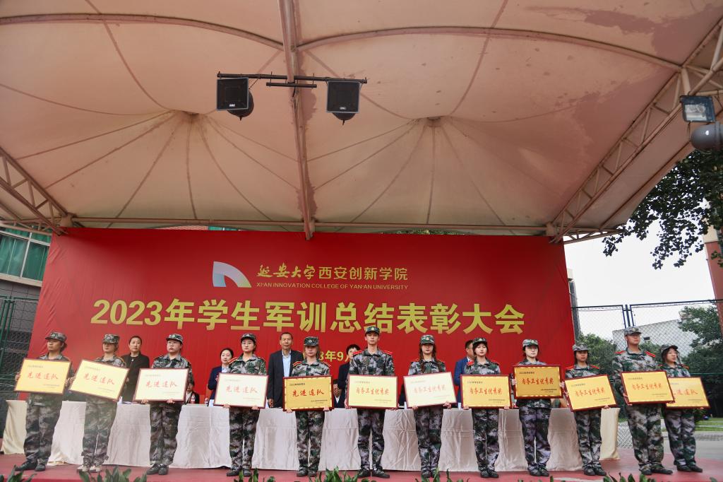 学工部部长、军训团政委丁晓宝宣读了《关于表彰2023年军训团获奖单位的决定》《关于表彰2023年军训优秀学员的决定》《关于表彰2023年军训优秀见习教官的决定》《关于表彰2023年军训优秀指导员的决定》。董事长崔海潮、执行董事长贺俊波、副董事长拓欣等校领导为获得表彰的集体和个人颁发了荣誉奖牌和证书。