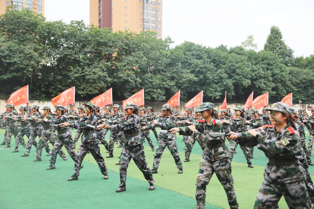 军训成果汇报围绕队列、匕首操、格斗术三个部分展开。近3000名参训员工军容严整、步伐铿锵、士气高昂。队列表演的同学们口号嘹亮,步伐矫健,动作整齐有力;匕首操表演整齐利落,果断出击,刚劲有力;格斗术动作套路连贯,拳拳生风,气势磅礴,势如破竹。同学们配合默契,训练有素,威武有力的招式、精练实用的技法、气势如虹的口号,无不体现创新学子斗志昂扬、奋发有为的精神面貌。