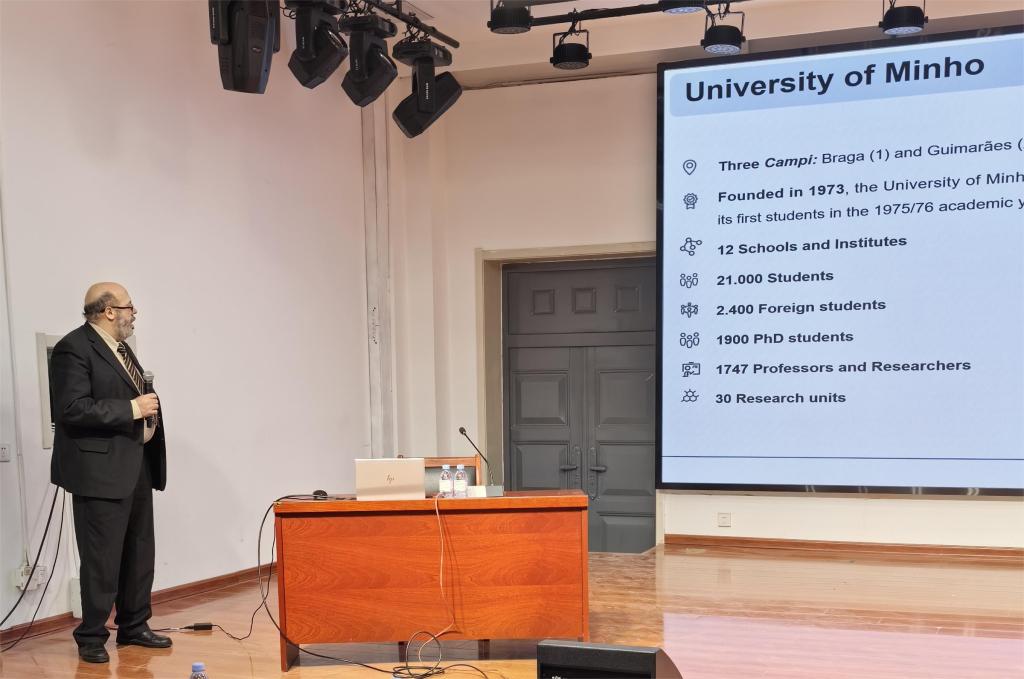 Jose Aguiar教授简要介绍了米尼奥大学概况。他指出,米尼奥大学在国际最有影响力大学排名第96位,其中土木工程专业在世界QS排名位列第140名,并详细介绍了土木工程专业两大研究中心之一的CTAC研究所。他表示,研究所专注研究建筑、城市规划、环境和可持续发展等领域,目标是促进知识创新和技术发展。同时,Jose Aguiar教授还详细阐述了当前新型建筑材料与工业垃圾管理理念。他强调,积极推动垃圾资源化利用,将废弃物转化为可再生能源或再利用的材料,提高材料的耐久性和可回收性,减少对有限自然资源的依赖,降低对环境的影响,是实现可持续发展的重要手段。