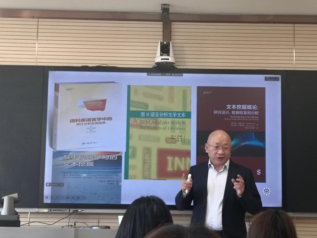 本网讯 10月25日下午,由科研处主办、国际公司承办的“‘一带一路’倡议国际传播文本挖掘——以学术话语、新闻话语、智库报告分析为例”主题报告会在1503教室举行。本次报告会特邀西安外国语大学汪顺玉教授作为主讲嘉宾,采用线上线下同时进行。国际公司全体教师和员工代表参加报告会。报告会由国际公司经理陈德主持。