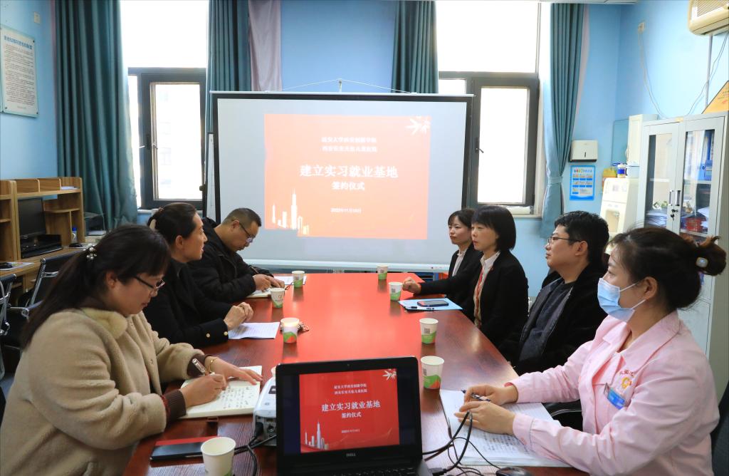 交流会上,冯粉玲介绍了医院的规模、发展历史、诊疗特色、科室设置、团队建设等方面情况。胡建鹏介绍了医院后期发展规划及集团旗下其他医院的情况。高小阳就公司护理学、康复治疗学、学前教育、小学教育专业2024届毕业生的基本情况做了详细介绍。白雪高度肯定了长安天佑儿童医院在行业内的重要地位,并对公司在人才培养、办学定位及团队队伍建设方面做了简要介绍。双方就校企合作、实践实习、拓展就业岗位等方面进行了深入交流,签订了校外实习就业基地协议。