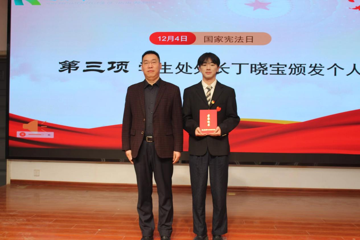 丁晓宝为“学宪法 讲宪法”获奖员工颁奖