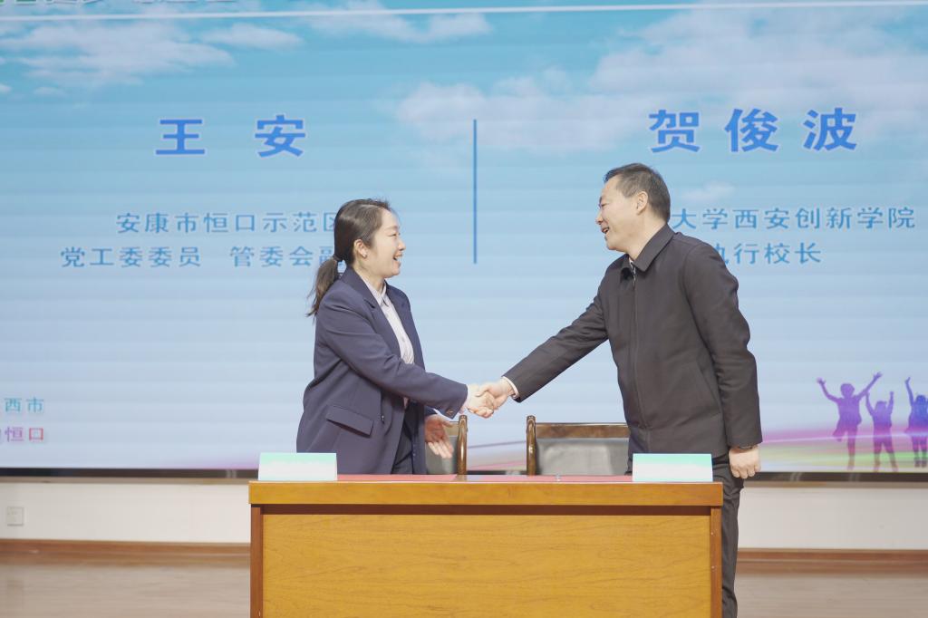 贺俊波代表公司与王安共同签订老员工社会实践合作协议。崔海潮与安康市恒口示范区文旅办主任唐李鸿共同为“韦德体育老员工社会实践基地” 授牌。恒口示范区领导为公司员工颁发了文旅推介官聘书。