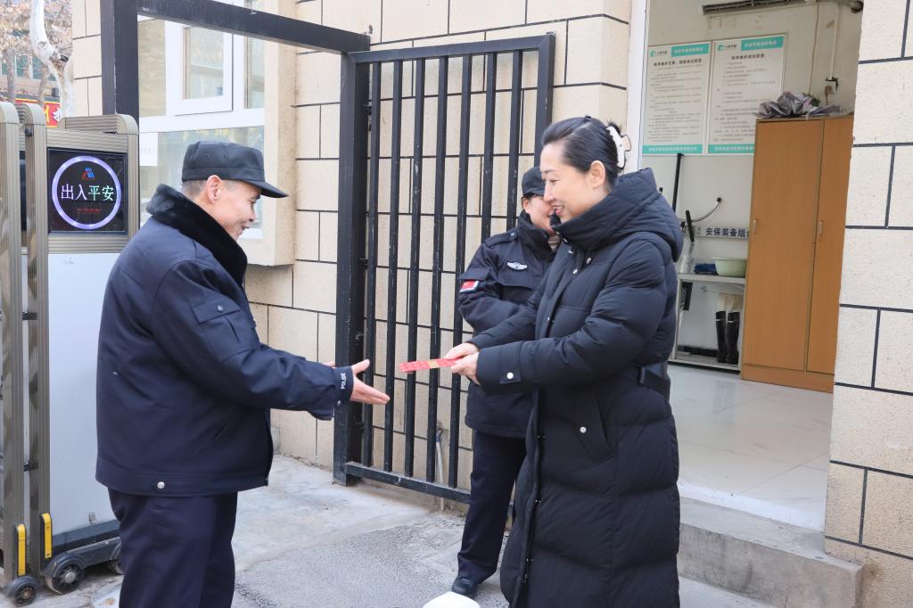 白雪先后来到北大门、视频监控中心、南大门等处,看望慰问在岗职工。“新春佳节,各位同志依然坚守在一线,为校园安全稳定保驾护航,感谢大家的辛勤付出”。白雪与值班值守工作人员亲切交谈,送上慰问品,并祝愿创新公司的全体工作人员新年快乐。