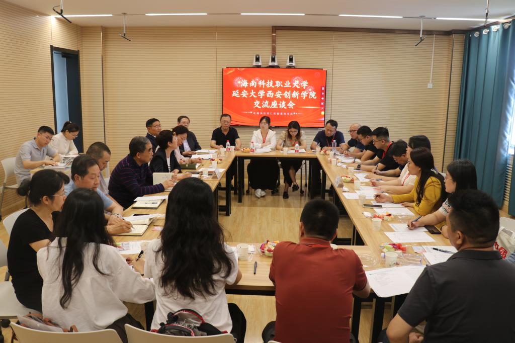 随后,崔海潮在公司第二会议室主持召开座谈会。崔海潮对郑兵一行的到来表示热烈欢迎,并从公司概况、办学定位、团队队伍、育人成效等方面介绍了公司的基本办学情况。郑兵对公司的热情接待表示感谢,并介绍了海南科技职业大学的基本情况。同时,拓欣在1503教室主持召开了交流座谈会,两校的教学管理部门人员、二级公司经理及教师代表围绕教学模式改革、学科专业建设、人才培养方案制订等公司产品方面工作展开了广泛而热烈的交流讨论。